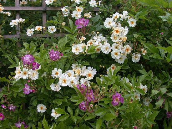 )Vielleicht hat Christine eine Idee? Sie hat ja auch viele rosa Rambler.Du kannst sie im Herbst ja umpflanzen oder du umpflanzt sie wirklich mit blauen Clematis und kombinierst sie mit einer eißen Kletterrose (wenn´s Platz für zwei gibt). Das sähe sicher auch sehr gut aus