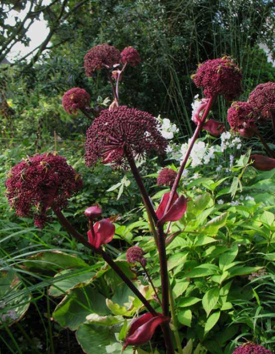 Barbara, du hast wahrscheinlich Angelica gigas - Rote Engelwurz.Im Forum gibt es schon einen Thread, vielleicht beantwortet der deine Frage.