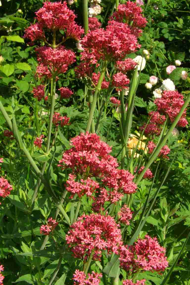 Zum Abschluß zurück zu den Stauden: um rote Farbtöne auch nach dem Abblühen der einmalblühenden Rosen zur Verfügung zu haben, stehen eine Reihe hübscher Stauden dabei, wie etwa dieser Allerweltskerl Centranthus ruber.Damit verabschiede ich mich von Euch Rosenexperten ... war alles richtig, Raphaela?