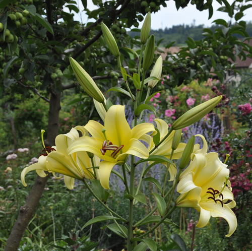 Diese hohe gelbe hatte ich eigentlich als Limoncello notiert. Aber nach Vergleich der Blüte....sie ist es nicht. Keine Ahnung wer das ist. Aber beeindruckend hoch über den anderen Blüten schwebend in dem Beet auf mindestens 1,30 m Höhe.Nun wird sie leider nach der Blüte Platz machen müssen.