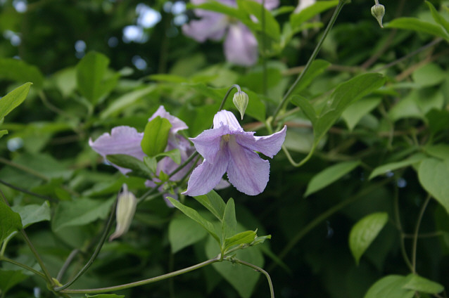 Ein schönes Eisblau hat auch C. viticella Vanessa. Sie fängt gerade erst an zu blühen.Kann es sein, daß auch Viticellas die Clematiswelke bekommen? An Negritjanka und Polish Spirit habe ich je einen trockenen Trieb entdeckt. Auch eine Texensis hat so was Vertrocknetes.