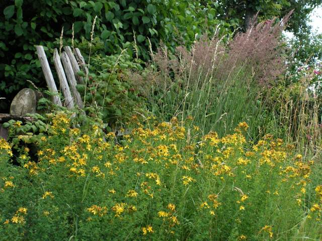 Für mich als "Gärtner ohne Beete" ein unverzichtbares Sommer-Gelb : Johanniskraut, Hypericum perfoliatum.