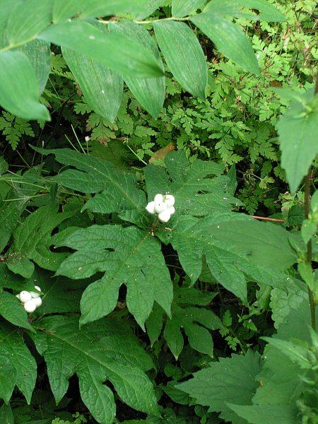 Triosteum pinnatifidum mit Fruchtstand.Pflanze bei mir ca.20cm hoch, kein Zuwachs in meinem schweren Boden, Blüte extrem unscheinbar, die Beeren sind ganz nett ... und steht ja gut rum im Dschungel