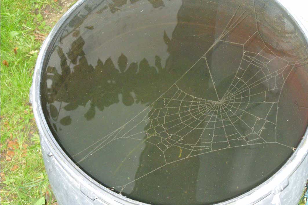 Und über diese Entdeckung habe ich mich auch sehr gefreut:Dieses Spinnennetz wurde vom Regen geflutet: