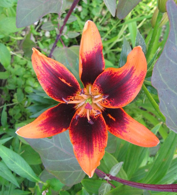 Gleiches gilt für die Sorte "Orange Marmalade Fox" (seltsamer Name!), von denen ich las sie seien pollenlos. Aber es entwickeln sich dennoch Samenstände, eventuell, weil L. hansonii in der Nähe steht? Oder sind die nicht nahe genug miteinander verwandt?Auch hier die Frage, ob ich die Samenstände abschneiden sollte? Von dieser Form sind im Übrigen die schon 2009 gepflanzten Exemplare genausogut zur Blüte gekommen wie die neuen vom Herbst 2010, allerdings haben die älteren wesentlich früher geblüht, mal sehen, ob sich das im nächsten Jahr angleicht.Hier gab es allerdings auf 20 Zwiebeln 3 "Ausfälle", was ich aber auch noch als zu verschmerzen empfinde, denn die Lilien sind zierlich und schön.