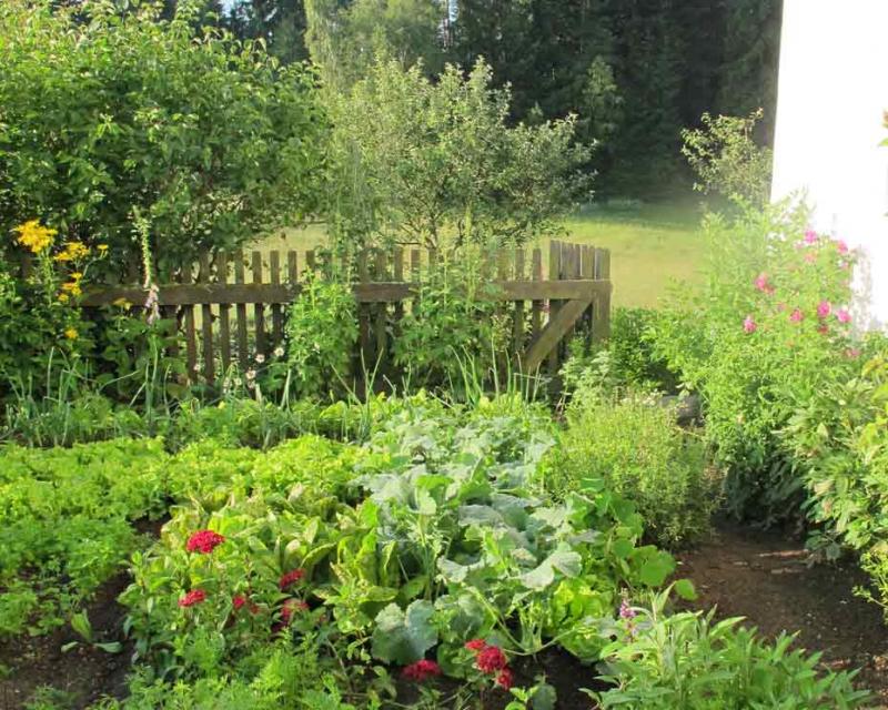 Die Nachbarn meinten, dort wäre die Erde so gut, und so pflanzte ich auf ihren Rat zunächst Kartoffeln. Inzwischen teilen sich die Gemüse den Platz mit Phlöxen, Ringelblumen, Herbstastern und Damaszenerrosen.