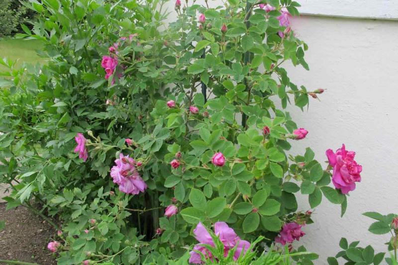 Heuer ist alles besonders groß, das Liebstöckl ist auf 1,50 m. Daneben eine uralte Fundrose aus dem Dorf, die als Ausläufer zu mir gekommen ist