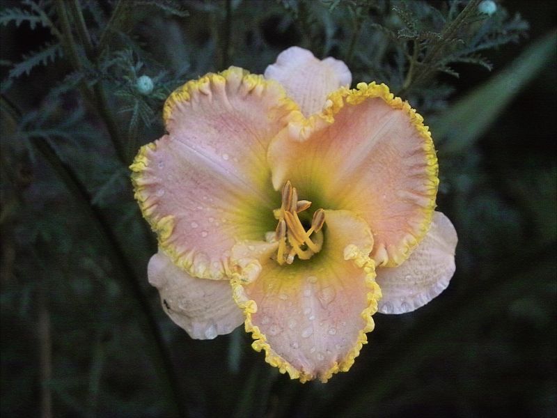 Und einen Spider-Sämling aus Blue-Venture (nicht von mir). Die Farbe schwankt sehr stark, weil der Rotanteil variabel ist und die Blüte außerdem im Lauf des Tages zu Lavendelrosa oder Lavendellila verblasst. Die Aufnahme ist früh morgens gemacht.
