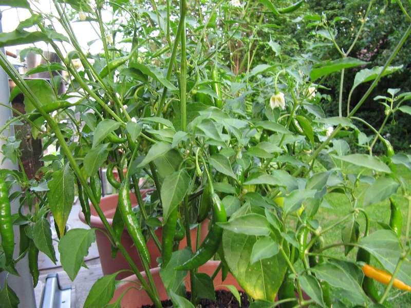 Die habe ich auch seid Jahren, weil sie so zuverlässig trägt.Wo hast Du Saat von der Paprika Novosibirsk her? Scheint ja ein guter Tipp für nördlichere Breiten zu sein.Hier eine Chillipflanze, Criolla Sella. Sie hängt übervoll. Die ersten Schoten werden jetzt orange. Ich freue mich schon sehr darauf.