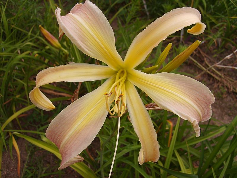 Naja, im ersten Standjahr muß man noch über einige sehr offensichtliche Mängel hinwegsehen. Immerhin haben die Blütenblätter schon einen gewissen Disco-move