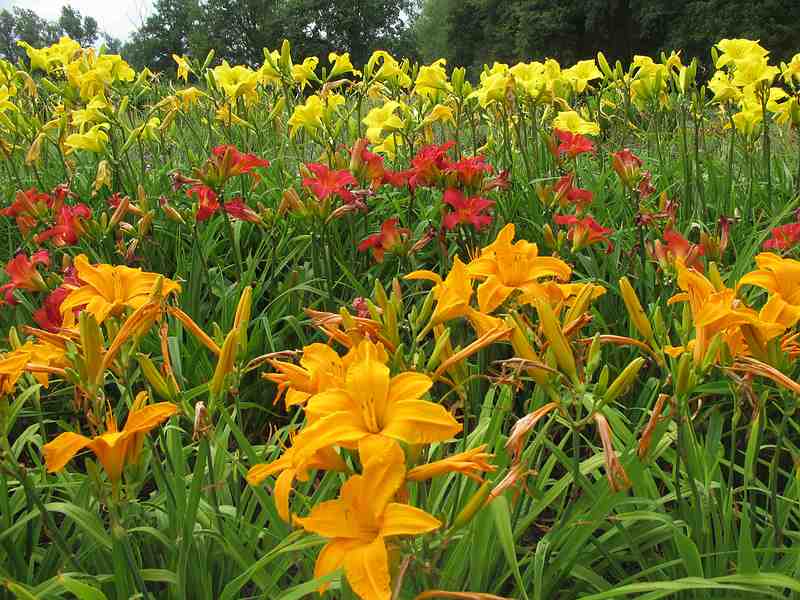 Das ist auch so etwas. Aber wenn schon für Gartencenter, dann sollen es zumindest vernünftige Sorten sein: 'Burning Daylight', 'Beste Kirsch' und 'Berlin Lemon'. Genau die drei Sorten stehen auch in meinem Privatgarten.Sieht allerdings fast nach einer Anpflanzung für Gartencenter-Ware aus: Taglilie orange, Taglilie gelb, Taglilie rot,...![]()