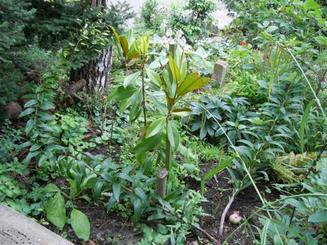 ..das andere Ende guggt durch Magnolia sieboldii....Standfest ist anders ;Dvanessa , wenn du mal eben schnell Knospen zählen würdest...