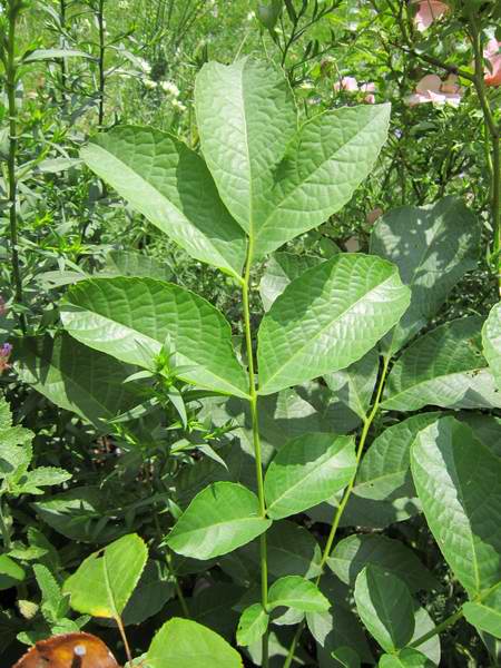 Heute habe ich mit einem gewissen Entsetzen in einem Beet zwischen Rosen und Stauden dieses Gewächs entdeckt - ich hab es da sicher nicht hingesetzt, es ist riesig, es sieht aus, als wollte es ein Gehölz werden