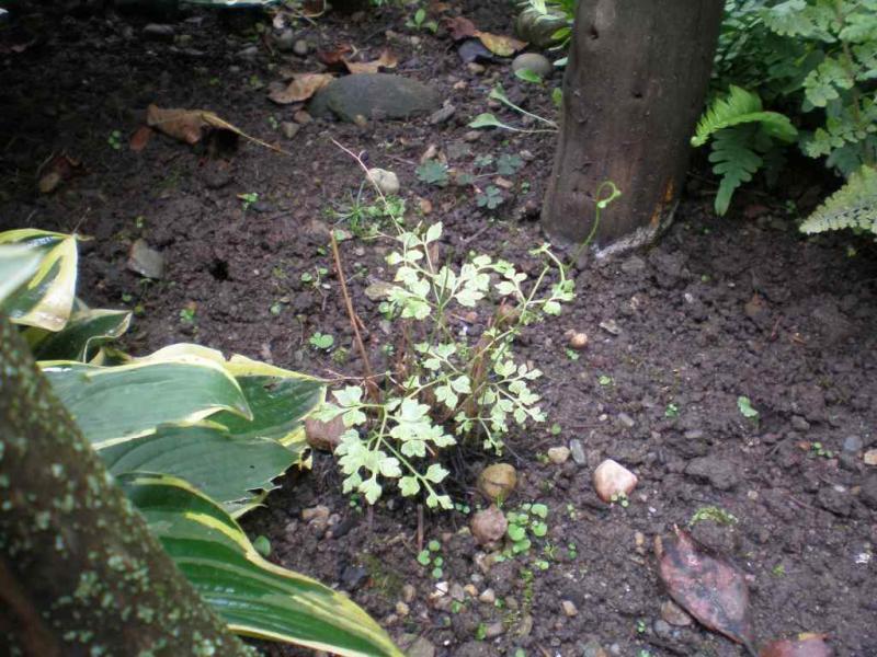 Meine beiden Adiantums sind 15-20 Jahre alt, bis ein Horst diese Größe erreicht, dauert es mindestens 10 Jahre. A. aleuticum wächst schwächer, davon habe ich schon mal erfolgreich ein Teilstück mit der Spitzhacke abgetrennt und es ist am Leben geblieben. Man bekommt ihn nicht so häufig, er ist anscheinend schwieriger zu vermehren, aber der rote Austrieb ist besonders attraktiv. In Bingerden gibt es einen Farnhändler, ich habe mich leider nicht um seinen Namen gekümmert, er hatte sehr schöne Farne, auch diesen. Allerdings sind diese Farne heute meristemvermehrt.Ob man den kleinen Zwerg im Topf halten kann, weiß ich nicht, das Problem ist halt die Überwinterung, vielleicht kannst Du den Topf im Winter eingraben.