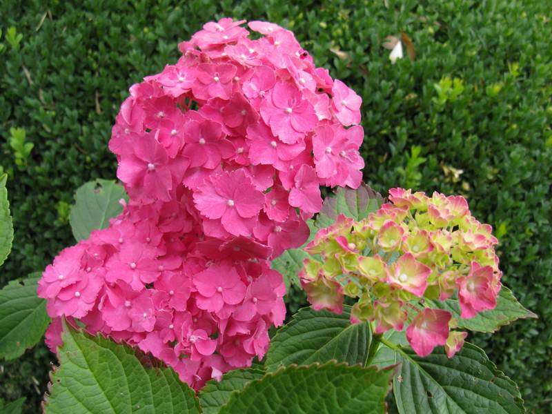 Merci für die Vergleichsbilder.Hallo leonora,aus meiner Sammlung habe ich nur H. macrophylla 'Parzifal' als Vergleichsobjekt anzubieten. Sie wird meines Wissens auch blau gefärbt verkauft.Oder hast du sie selbst aus einem Steckling gezogen?Ich bin mir jedoch nicht sicher. Die Blütenblätter deiner Hortensie scheinen mir noch etwas stärker texturiert zu sein. 'Parzifal' hat bei mir übrigens relativ rundliches, glänzendes Laub.Kann jemand von euch diese Ballhortensie bestimmen?Sie macht von zartrosa über violett bis blau alle Farbnuancen. Am selben Strauch (!) und völlig ohne Alaun oder sonstige "Hilfsmittel". Sie steht auch nicht in Rhodoerde sondern in normalem Gartenboden. Ich finde sie sehr schön.LGLeo