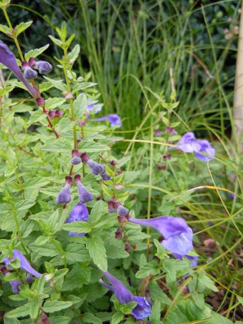 Scuttelaria (baicalensis???) mit Carex humilis "Hexe"