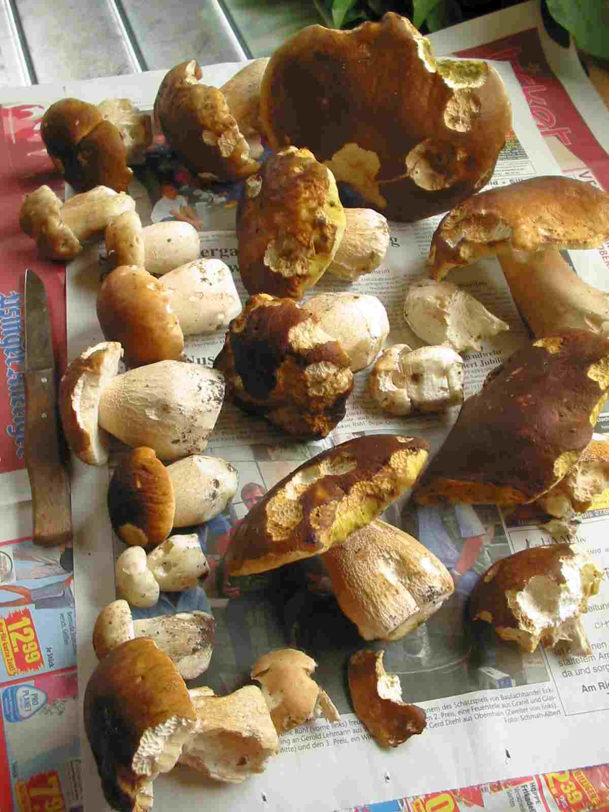 Die ersten hier gezeigten Steinpilze haben mich ganz wuschig gemacht und ich bin vorhin vorm Gewitter mal kurz auf die andere Straßenseite in den Wald gehuscht, noch in Sichtweite vom Knusperhäuschen und der Straße wurd ich fündig, den schweißtreibenden Weg weiter in den Wald hätt ich mir sparen können, da war noch gar nichts zu holen.