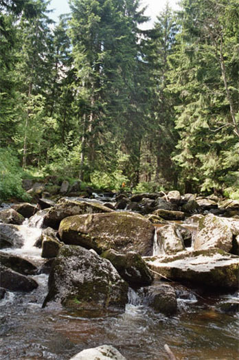 In einem engen, dunklen Tal, dort, wo der Kamp noch nicht einmal ein Flüßchen ist, hat sich der Teufel, so die Sage, einmal vor langer Zeit aus Territoriumsgründen so geärgert, daß er riesige Steine ins Wasser warf; seither spielt der Bach an dieser Stelle Wildwasser. Letzten Sonntag entdeckte ich dort zuerst ein Exemplar, dann eine ganze Kolonie Rosa alpina, von denen eine eine erste Blüte geöffnet hatte. Ich hatte gedacht, daß sie nur in den Alpen, also auf Kalkboden wächst! Bei mir hatte sie gerade, wie auch im vergangenen Jahr, auf der schattigen Nordseite lange vor allen anderen eine zart nach Waldzyklamen duftende Blüte geöffnet