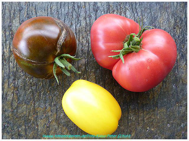 und gestern habe ich meine tomaten am spalier geerntet - casadys folly, pizzo tello, suesse friesin und kuestengold: