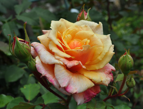 Caramellada sie so unermüdlich blüht, trotzdem nicht mehr meine Lieblingsrose ist, nun etwas Herbstfarbe zeigt, doch mal ein Bildchen von ihr: