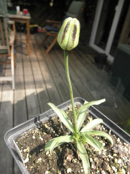 Ich mußte meine L. henryi auch stützen, sie sind allerdings noch im Topf.Hier beginnt Lilium lancifolium mit der Blüte.