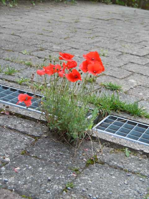 Wir hatten das Thema schonmal. Allerdings gings da eher um Roundup und so.Mach jetzt mal das Thema neu auf. Was wächst bei euch in Ritzen, Fugen und Co?Fang mal an mit Klatschmohn. Er ist so niedrig, weil immer Auto drüberfährt