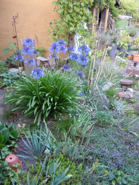 fürwahr, das tut es immer und überall.... das Industrieblau der Tonnen im Hintergrund, bitteschön, das stört doch gewaltig das geniale Blau der Agapanthi, nicht?![]()