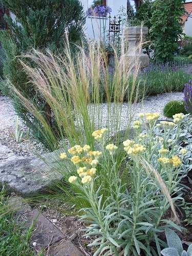 ...die Feuchte-liebenden Helenium passen nicht ganz in den Kontext der Trockenkünstler. Halten es die Helenium hier gut aus, ohne viel Gießen?Stipa barbata (pulcherrima)