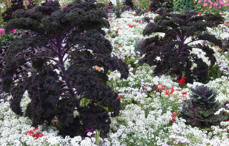 Das im Hochsommer der Herbst schon vor der Tür steht, zeigt dieses Beet auf der EGA in Erfurt mit Kohl zwischen Sommerblumen.