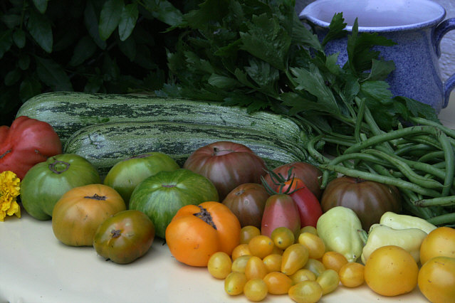 . Da kommt Freude auf, gell ?Das ist mein Erntebild von gestern. Schön langsam bekomme ich die Tomatenschwemme