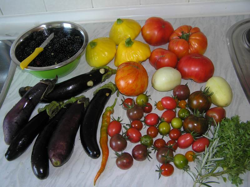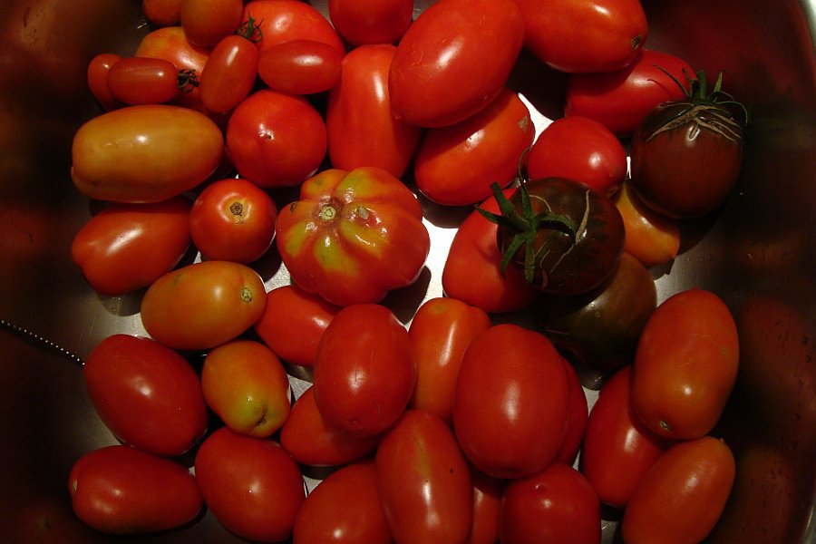 Dieses Jahr scheint ein richtiger Tomatensommer zu sein.Geerntet habe ich Tomaten, Mirabellen, Brombeeren, Himbeeren, Japanische Weinbeere. Komme mit dem einkochen nicht mehr hinterher.