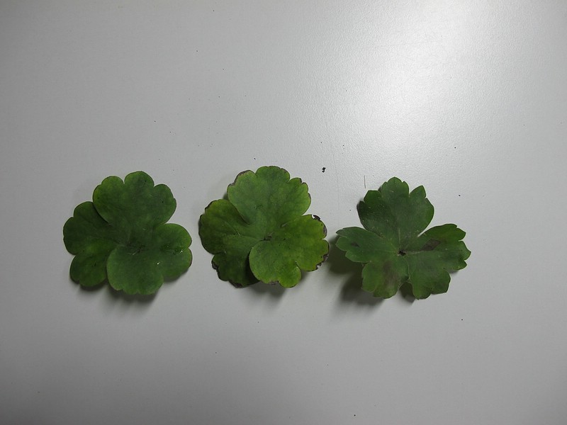 Bisher war mir unklar, warum H. transsilvanica 'Buis' einen Sortennamen hat. Die von einem norddeutschen Hepaticaspezialisten erworbenen unterscheiden sich in Nichts von den normalen transsilvanica. Heute erhielt ich von Mr. Hepatica als echt identifizierte 'Buis'. Welches der drei Blätter auf dem Foto könnte von dieser Sorte stammen?- H. transsilvanica- H. 'Buis' neu- H. 'Buis' vom deutschen Staudengärtner