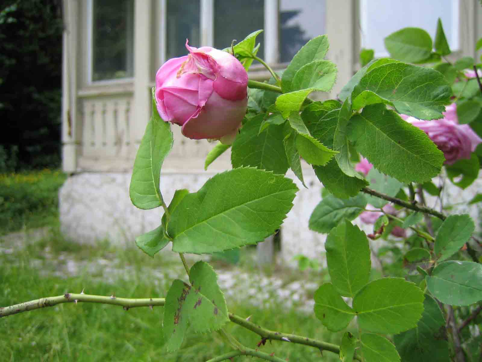 Gestern Abend habe ich weitere Fotos gemacht.Das ist ein Detail der Nr. 5. Die Knospe ist leider nicht ganz scharf. Diese Rose hat viele feine Stacheln.