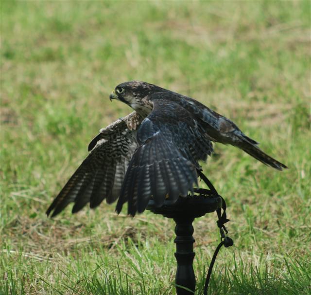 Dann hatte ich noch "Swerver"den Sakerfalken,( Falco cherrug) der diesen Namen bekam, weil sie ihn einmal nach 3 Tagen in Delfseil holen konnten, der hatte sich mal Urlaub genommen .