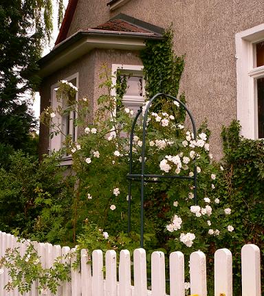 ) und ca. 8-9 m breit. Nachdem sie 2009/10 stark zurückgefroren war, hat sie jetzt mit einzelnen Trieben bereits wieder die Dachhöhe erreicht. Sie blüht für eine einmalblühende Rose sehr lange. Einziger Nachteil: sie duftet nicht.MAC ist von 6 m Höhe im letzten Winter komplett erfroren