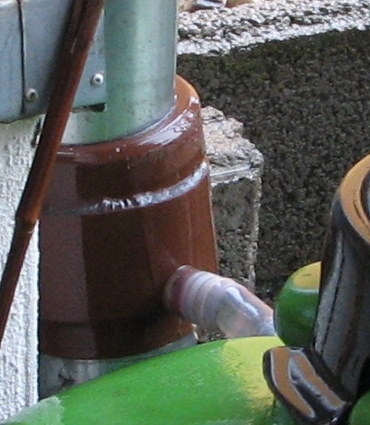Eine Stunde später - ich musste zwischendurch den Rechner wegen des Gewitters runterfahren.Innerhalb einer Viertelstunde sind hier 14 Liter Regen gefallen. Unser Abzweig zum Regenfass wurde von den brodelnden Wassermassen im Regenrohr auseinandergedrückt, das Wasser lief über.