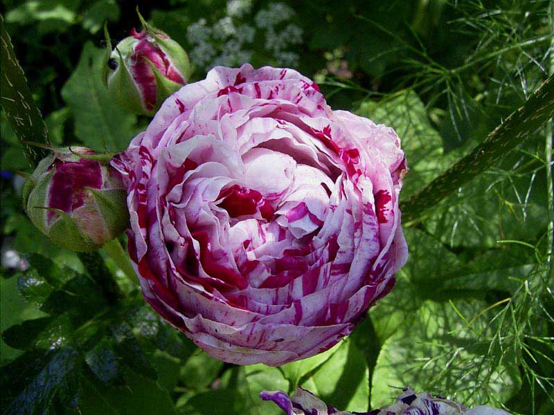 Hier das Bild von Gros Provins Panachee. Die offenen Blüten sind eher flach, nicht kugelig. Leider war mein Akku dann leer, morgen mehr...