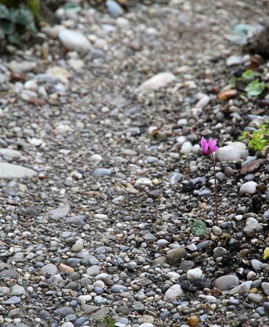 Lehmig-tonig ist aber deutlich verschieden zu humos-feucht. Ersterer sollte dahingehend verändert werden, dass auch genügend Luft an die Knollen kann.Die Frage nach sauer/alkalisch ist immer eine interessante. Es gibt Pflanzen, die zwingend auf pH-Bereiche angewiesen sind, sonst klappt es nicht. Sehr viele Pflanzen dagegen sind recht tolerant. Bei meinen Cyclamen (hederifolium, coum) war es ein Test, da sie anderswo untergegangen wären. Und es scheint ihnen zu gefallen. Anbei eher "typisch" gepflanzte Cyclamen purpurascens . Am Naturstandort stehen sie immer im schotterig/kiesigen, etwas Falllaub-Humus-haltigen Boden. Wasser rinnt in der Masse hindurch, da gut drainagiert.Ähnlich stehen meine Exemplare nun auch am neuen Alpinbeet (ca. 10 Exemplare gepflanzt, noch blattlos). In fast reinem (Kalk-)Kies am Beetrand. Abzuwarten, ob es taugt.Dass es etwas feuchter auch geht, will ich gerne glauben, denn bei mir speichert der schwere lehmig-tonige Boden immer viel Feuchtigkeit.Was mich aber wundert, ist der saure Boden, denn ich habe noch nie anderes gehört/gelesen, als dass Cycl. es alkalisch mögen oder sogar brauchen.Wie kommt es zu solchen Widersprüchen, frage ich mich.