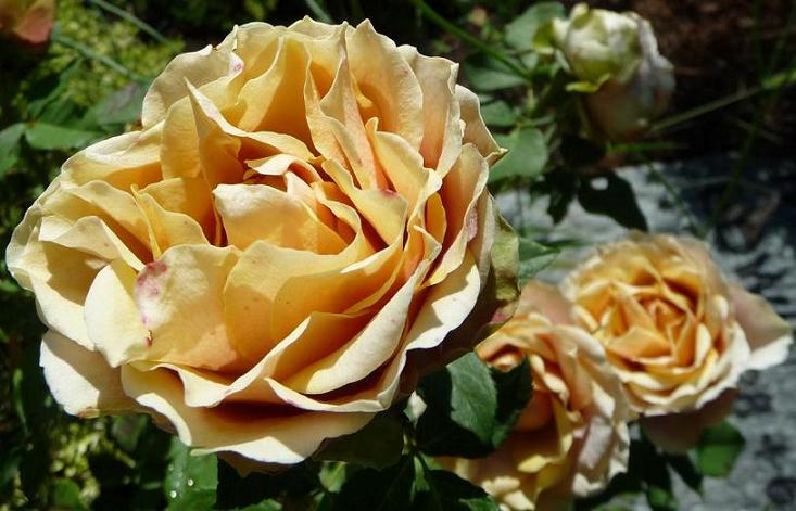 ich hab gestern auf dem Friedhof eine Rose entdeckt, da wüsste ich zu gern, welche das sein könnte. Mir fällt da eigentlich nur Caramella ein. Ich kenn die Caramella aus Hartheim und von marcir, aber beide sind wesentlich größer. Aber vielleicht ist sie ja noch jung.