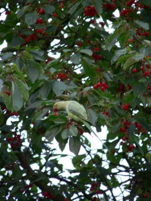 Ja, jede Menge! Die Birken stehen neben Wildkirschen im Nachbargrundstück. Da fallen sie in großen Schwärmen und mit lautem Spektakel jetzt jeden Abend zur gleichen Zeit zum Abendbrot ein, bevor sie in ihre Schlafplätze am Schiersteiner Hafen abfliegen.Hier einer in der Wildkirsche. Leider bekomme ich es nicht größer und schärfer, sie sehen schon recht putzig aus!@cydora: gibt´s die bei Euch in der Gegend?