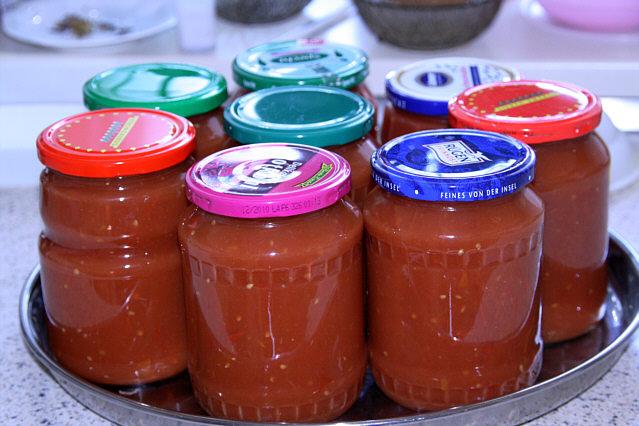 ich habe heute endlich auch meinen wintervorrat gekocht.einige gläser gelbe und rote tomatensoße...