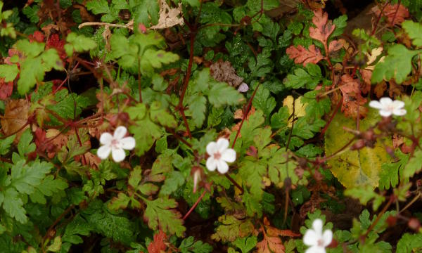 Geranium robertianum 'Album' hat wieder einen Schub blühender Pflanzen geschafft: