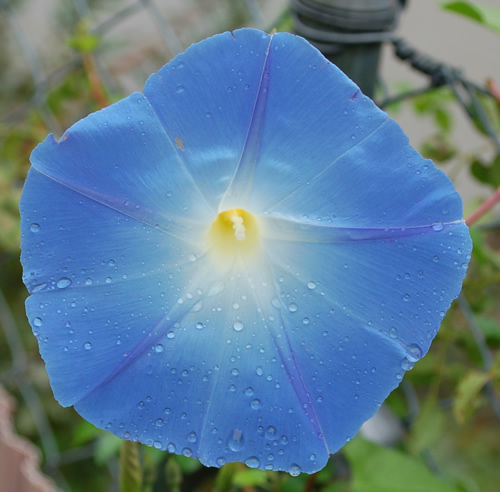 Ipomes in allen blau- und violett Farben blühen überall im Garten.