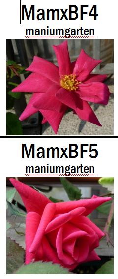 möchte Dich jetzt ungern in Verlegenheit bringen, aber kannst Du noch sagen, welche der beiden die eben gezeigte ist? Hier Screenshot aus meiner Wordtabelle...Jetzt mußte ich erst suchen - es ist Mamy Blue x Bright Fire. Interessanterweise entwickeln sich die beiden Röschen aus gleicher Kreuzung völlig unterschiedlich. Die eine ist ein niedriges Röschen, obwohl sie schon im Beet wächst, leicht verzweigt, gefülltere Blüte. Die andere (Bild oben) wartet noch im Topf, sie dürfte eine Kletterrose sein, hat nur 1 Trieb, schon über 1m hoch. Beide haben schon 3x eine Blüte geschoben, jedes mal ist sie etwas fülliger als vorher.Die Rose "Züchtung FBB" gefällt mir aber sehr!