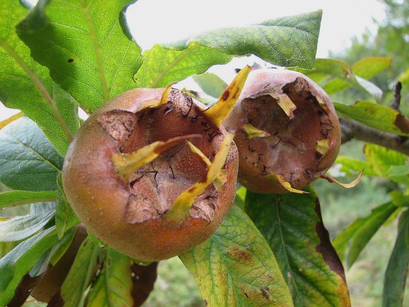 Über den Zierwert der Früchte kann man streiten - aber ich finde sie auffällig und interessant: Mespilus germanica . Trägt dieses Jahr unglaublich reich.