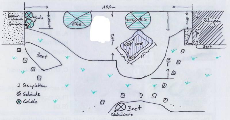 Die Rose kommt weg, ebenso der Hartriegel neben dem Schuppen und die zwei Buchskugeln bei der Forsythie.Eibe wird regelmäßig geschnitten. Die Sitzgelegenheit ist eine gute IdeeDiese Rose und das Moor - das paßt so nicht zusammen. [...] und vom Sitzplatz die kleinen Moorbewohner ansehen. Und da sich dort mit der Zeit sicher Schätze ansammeln, will man ja auch nicht nur aus 2 Meter Entfernung gucken.