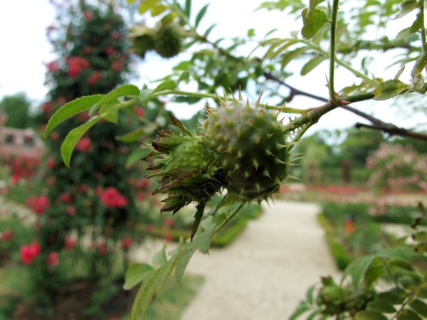 Hier eine Hagebutte von Rosa Roxburghii x Rosa rugosa (aufgenommen in Roseraie da la Hay):