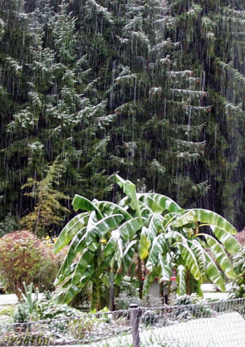 Kann leider in Kärnten den Schnee bestätigen. Eigentlich hieß es nur in 900m Schnee möglich. Aber heute nachmittag schneite es plötzlich wie verrückt! (Siehe Foto). Gewitter, starker Regen der dann in Schnee überging.