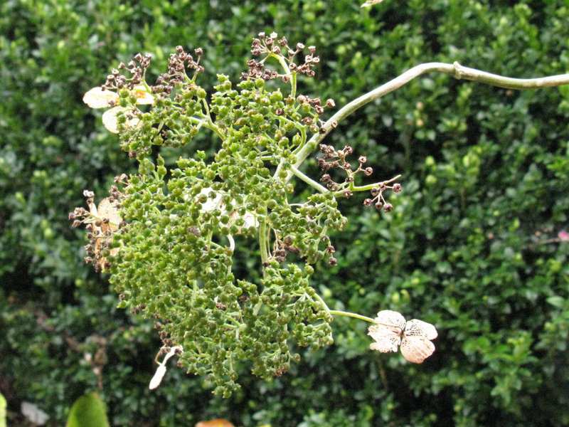 Inzwischen habe ich herausgefunden, dass im Royal Botanic Garden Edinburgh noch Exemplare von dieser Pflanze stehen sollen.Hier für die völlig verrückten Hortensienfreunde noch Herbstbilder von meinen Samthortensien.H. aspera 'Elegant White', die vielleicht auch H. longipes var. fulvescens oder H. glabripes heißen könnte
