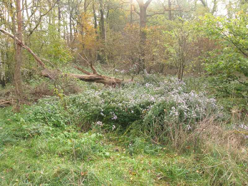 Da hat wohl jemand im Wald "entsorgt" ;)Ist das auch Asran? Hast du die Blätter von Nahem?(Asran ist eine wunderschöne Aster, vor allem für Gehölzränder, dort darf sie sich auch ausbreiten. Eher weniger geeignet für niedrige Nachbarn in gepflegten Beeten)